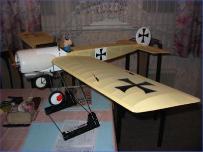 Diese Fokker E III ist ein Modell von Graupner, wahlweise mit El.- oder Verbrennermotor angetrieben. Ich habe mich für die